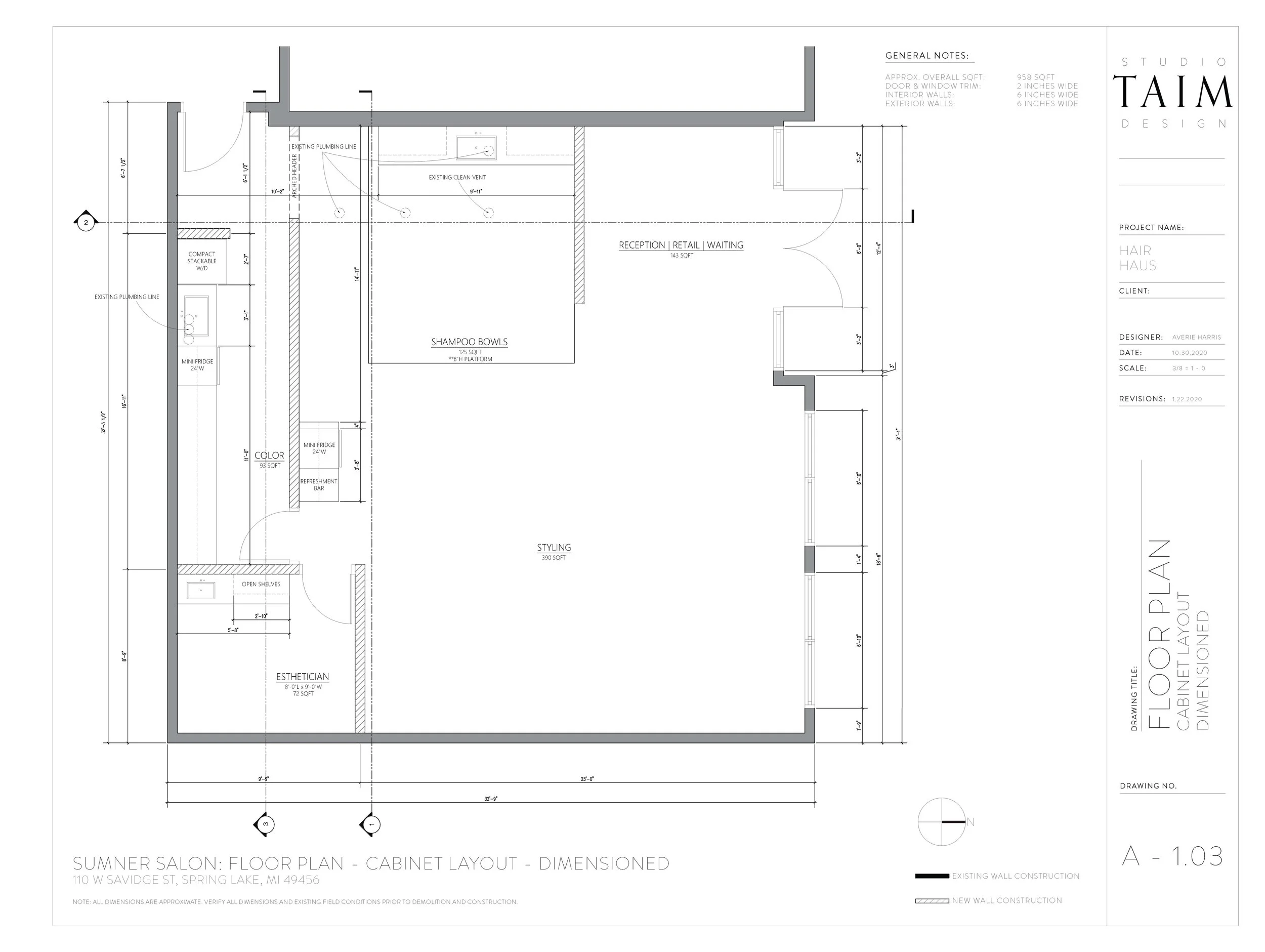 Hair Haus is a full service salon project. Studio TAIM Design assisted the young, dedicated owner with interior architectural structure planning, lighting layouts, cabinetry design, and furniture space planning for her new salon build-out in Spring Lake, MI.